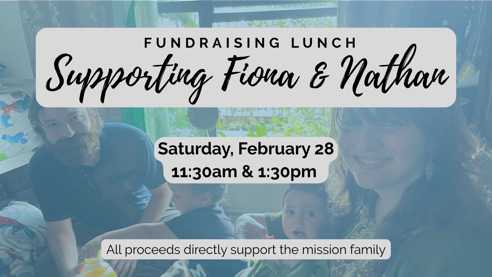 Join us for a fundraising lunch supporting our missionaries Fiona and Nathan. Enjoy a delicious meal, meaningful fellowship, and the opportunity to directly support their mission work.