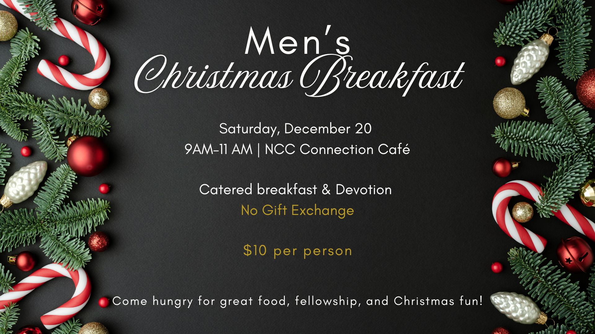 Join us in the Connection Café for a catered breakfast by John Contes—you won’t want to miss his delicious menu. We’ll enjoy a short Christmas devotion to help center our hearts on the reason for the season!